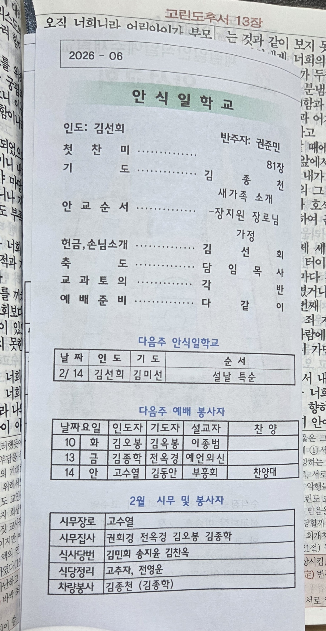 여기까지 인도하신 에벤에셀의 하나님께 감사 예배를 드리는 안식일(2026.2.7) 학교 시간을 소개합니다.